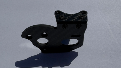 A compact, lightweight carbon mount engineered to lock your 30mm or 40MM fan in the perfect cooling position. Clean, rigid, and race‑ready—built to keep temps down and performance up on any chassis. This will fit the 5 gear transmission as intended, it will also fit the 3 gear just with one screw.